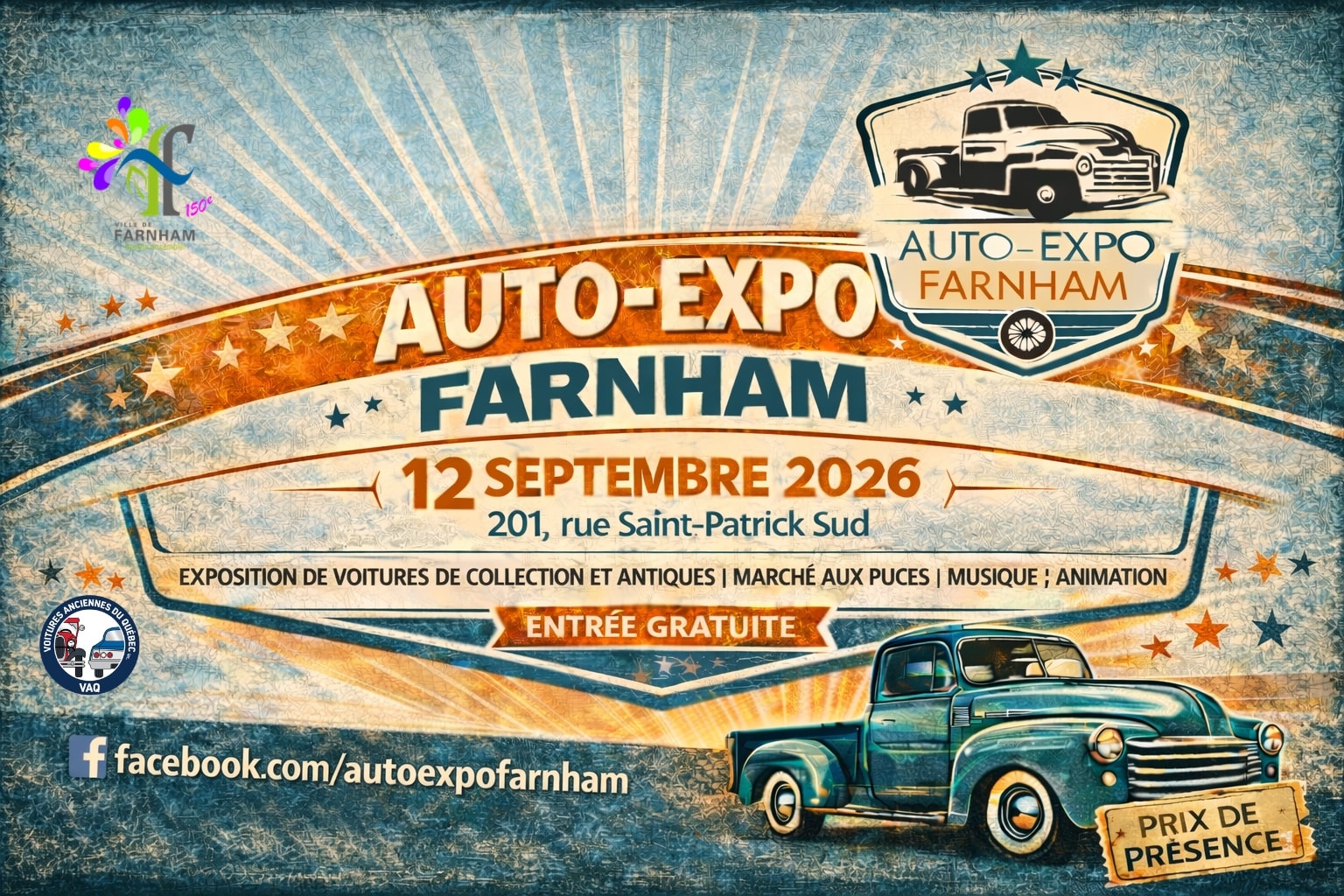 Auto-Expo Farnham Samedi 12 septembre 2026 Bienvenue à notre 6e édition! PARC ROCH-BOURBONNAIS (201, rue Saint-Patrick Sud) Nous vous attendons en grand nombre, de 8 h à 15 h 30! ENTRÉE […]
