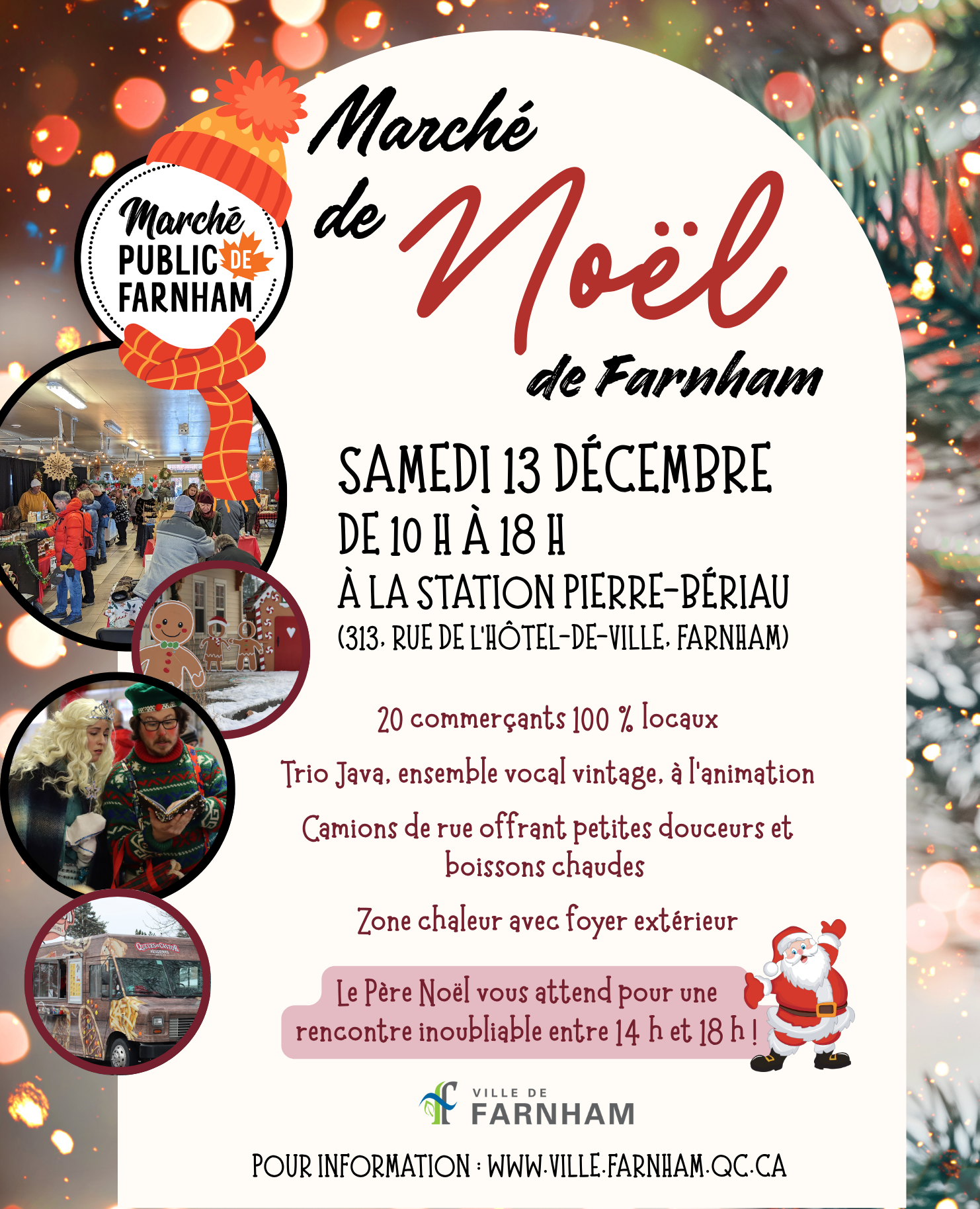 C’est avec un immense bonheur que nous vous invitons à venir rencontrer et soutenir vos producteurs et artisans locaux lors de l’édition du Marché de Noël de Farnham le samedi 13 décembre 2025, de 10 h à 18 h!