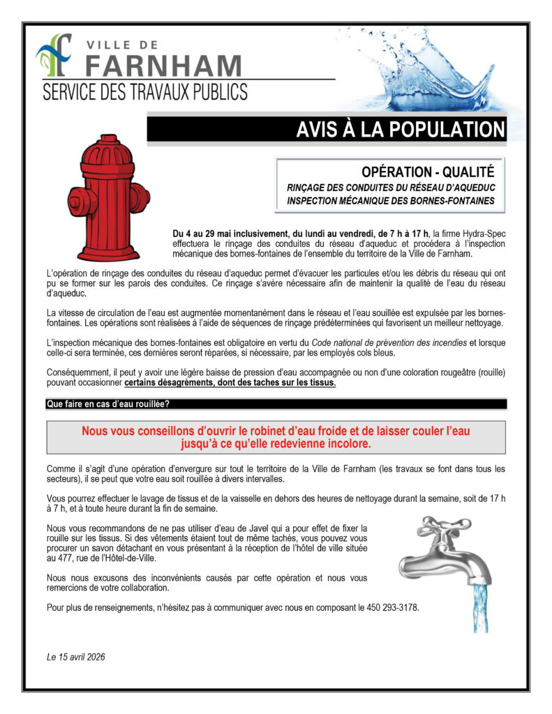 Rinçage du réseau d’aqueduc et inspection des bornes-fontaines